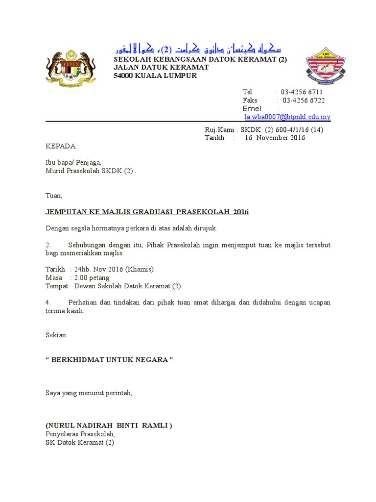 Related : Contoh Surat Jemputan Kepada Inu Bapa : Check spelling or type a new query..